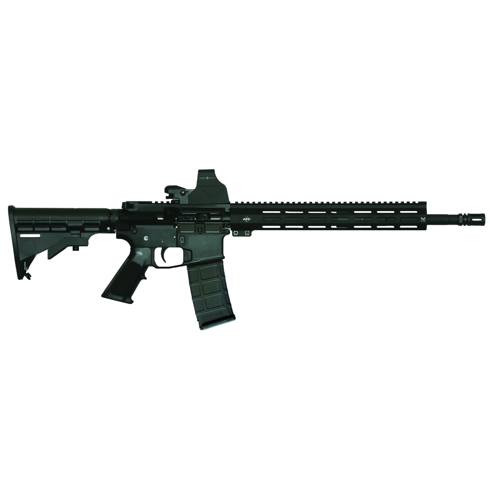 The APF Slim Carbine is built around a 16″ 5.56 NATO barrel with a 1:9 twist rate. This rifle uses an M16 bolt carrier group and an APF 13” M-LOK handguard. This rifle has an A2 Flash Hider to reduce muzzle flash and a carbine length gas system that ensures the utmost reliability under any condition. The free-floating APF 13” M-LOK Handguard features a slim, lightweight profile that offers increased ergonomics and modularity while continuing to provide the utmost strength and durability. The handguard also provides an uninterrupted rail along the top, which allows room for sights and optics. The rifle is topped with a Sightmark ultra shot plus red dot making it out of the box range ready.